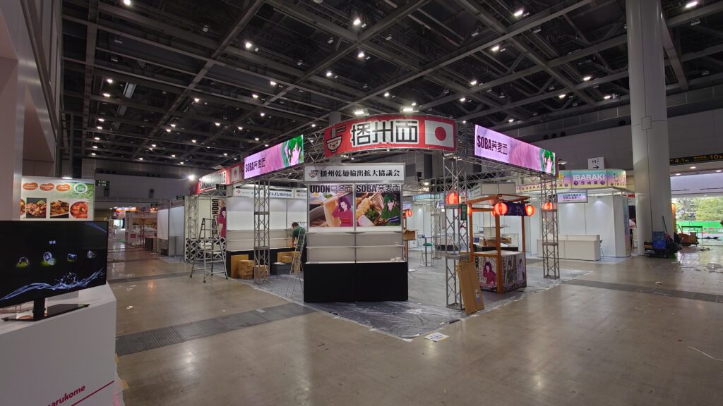 播州乾麺輸出拡大協議会さんの展示会はこれで3回目でしたが、毎回会場が違うので事前準備がそれはもう大変です(´-ω-`)