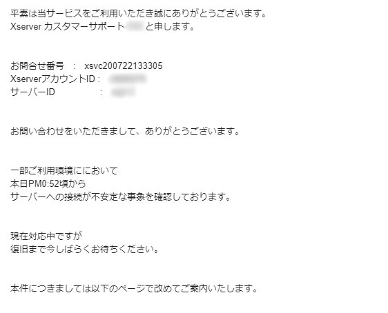 どうせなんでそうなった原因もわからんし、一言「ごめんゴm(__)m」で済まされるのだがまだ障害情報出すだけマシか。