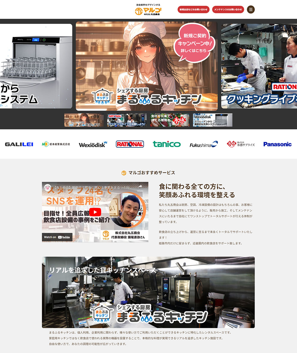 今回は施工実績はそのままに、丸五商会独自のサービスやイベントを前面に押し出した構成です。