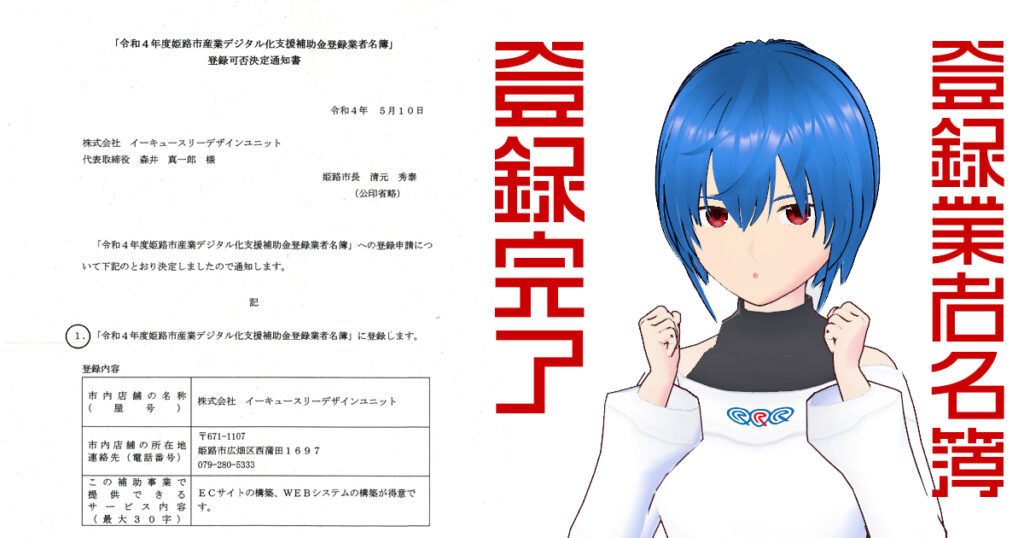 姫路市産業デジタル化支援補助金登録業者名簿に登録完了なのです。