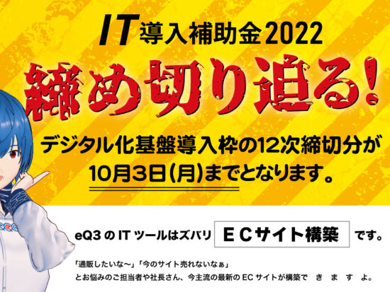 EQ-design News [ ビジネス ] Category カテゴリーを選択全ての記事ビジネスブログ実績 Year 年月を選択 2026 年 2025 年 2024 年 2023 年 2022 年 2021 年 2020 年 VTuberみもりオリジナル曲 「Texture」 公開しました❣ eQ3 ビジネス 2023.3.18 (Sat) VTuber姫尻もも🍑オリジナル曲「Story」公開! eQ3 ビジネス 2023.2.20 (Mon) IT導入補助金2022最終の締切まであと1ヶ月 eQ3 ビジネス 2023.1.19 (Thu) 【制作実績】株式会社難波工業WEBサイトリニューアル eQ3 ビジネス 2023.1.7 (Sat) 年末年始のお知らせ eQ3 ビジネス 2022.12.13 (Tue) IT導入補助金2022 デジタル化基盤導入枠締め切り迫る! eQ3 ビジネス 2022.9.6 (Tue) VTuberをめざすなら!|みもりニュース号外 mimori ビジネス 2022.8.19 (Fri) 会社パンフ(初)できまちた! mimori ビジネス 2022.5.25 (Wed) 姫路市産業デジタル化支援補助金登録業者名簿に登録完了なのです。 mimori ビジネス 2022.5.18 (Wed) ‹ 1 2 3 4 5 › -News - お知らせ-ビジネス Contact Us デザイン経営であなたの会社が変わる。経営にもクリエイティブなデザインの発想を。 会社を変えてみる